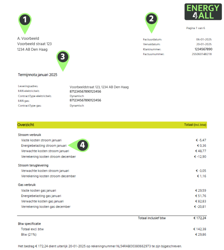 Elke maand ontvangt u een termijnnota: een overzicht van het bedrag dat wordt geïncasseerd voor uw energiecontract. Op deze pagina leggen we uit hoe deze nota is opgebouwd en wat u kunt verwachten.